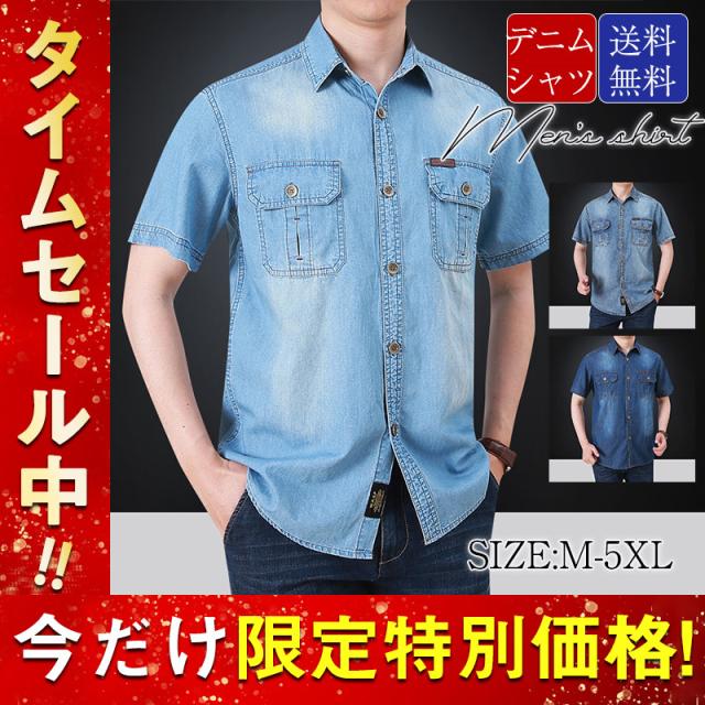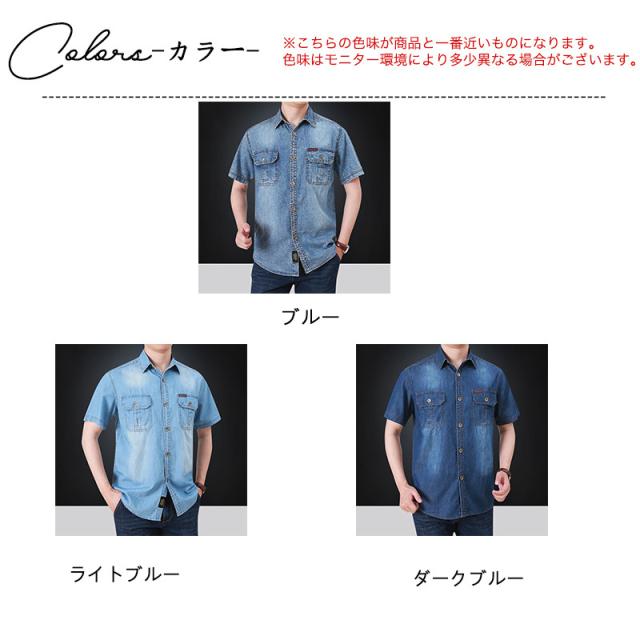 シャツ デニム メンズ 半袖 デニムシャツ ジャケット 夏服 カジュアル アウター ジージャン ウォッシュ加工 通気性 無地 お洒
