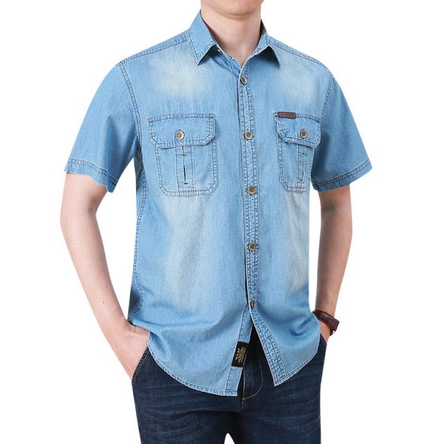 高品質加工 デニムシャツ メンズ カジュアルシャツ 半袖 七分袖 5分袖 無地 通学 通勤 トップス ダンガリー ウエスタン ウエスタンシャツ 開襟 メンズファッション 男性用 20代 30代 40代 50代 ビジネスシャツ 大きいサイズ ダメージ スリム ストレッチ ゆったり インディゴ ジージャン 紳士服