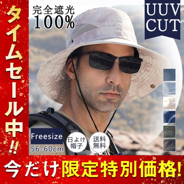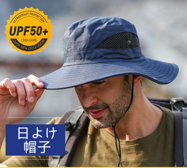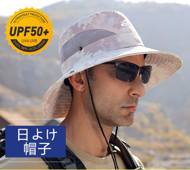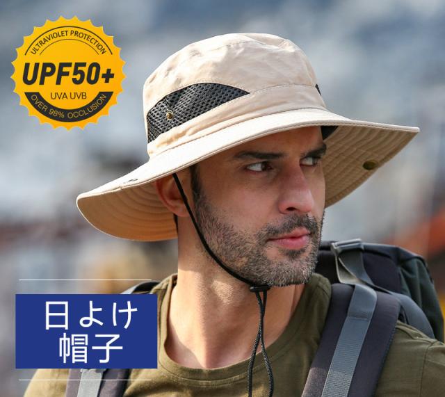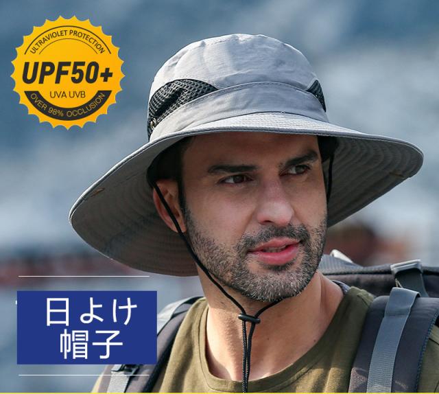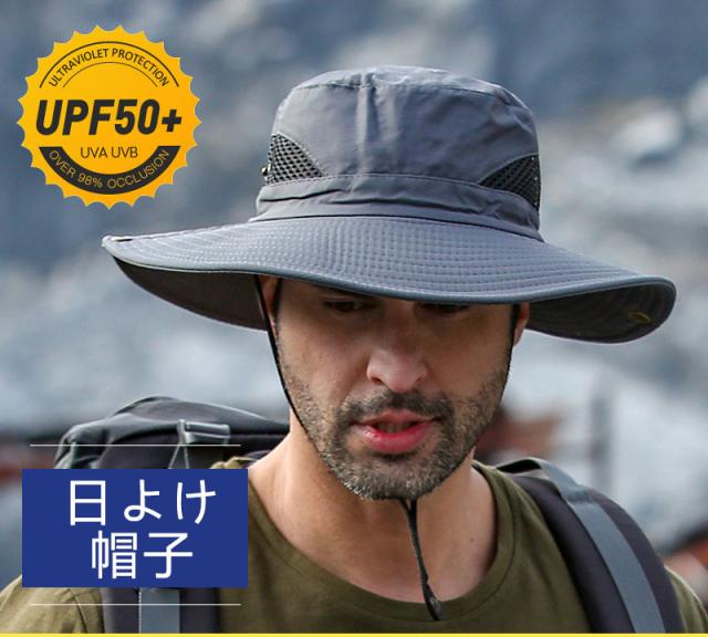 日よけ帽子 メンズ サファリーハット UVカット 紫外線対策 あご紐 飛ばない 通気性 折りたたみ ゴルフ 釣り 登山 農作業 夏