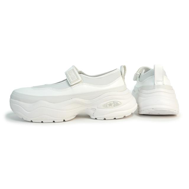 オールスターと90年代のトレーニングシューズをモチーフにしたボリュームのある厚底ソールを合体し、流線的でレトロスポーティな印象に仕上げたサージトレーナー。 アッパーにラバーの仮底を付けない設計を採用することでボリュームのあるデザインながら軽量化を実現。
