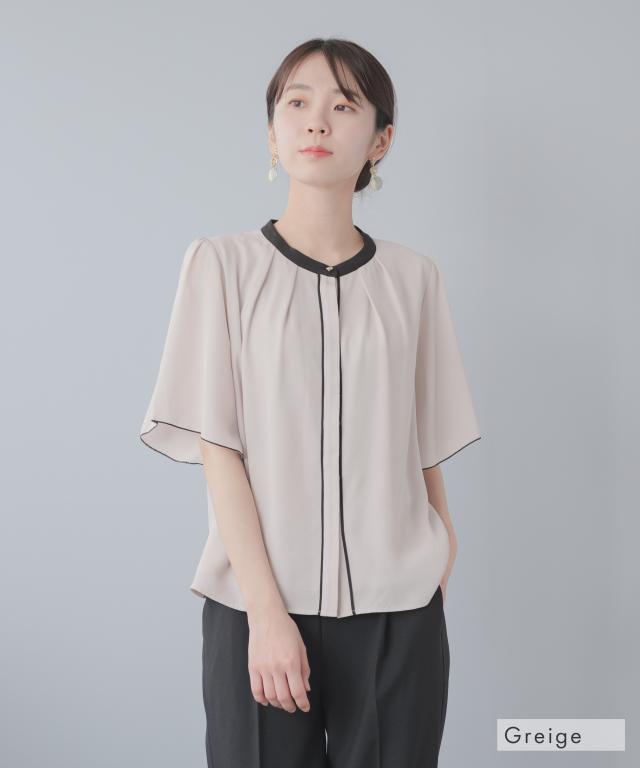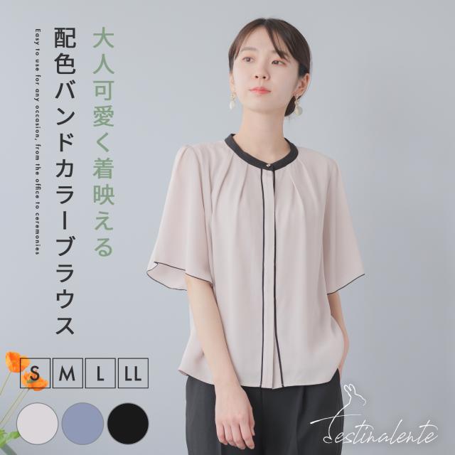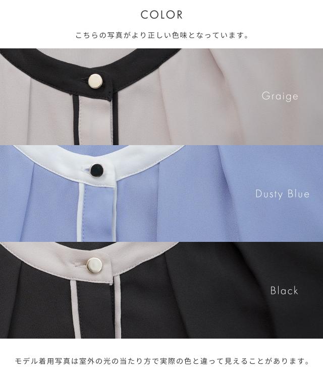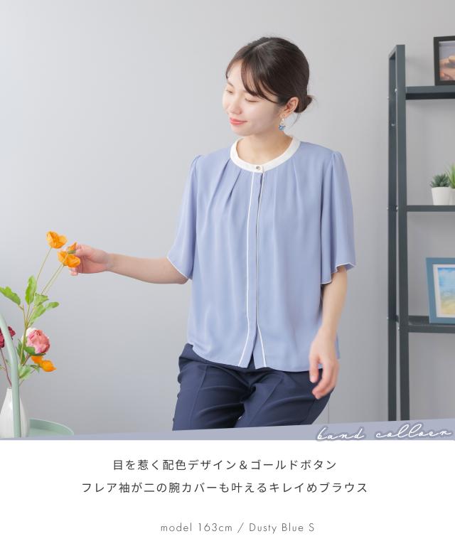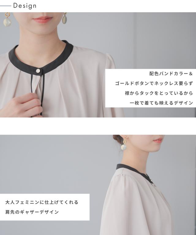 配色バンドカラーブラウス
