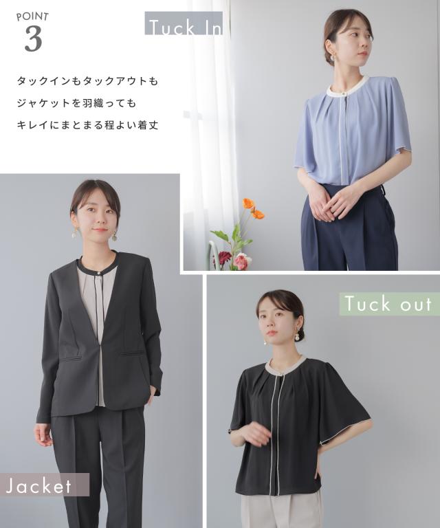 | 特徴 | 目を惹く配色デザイン&ゴールドボタン。 フレア袖が二の腕カバーも叶えるキレイめブラウス 肘ほどのフレアスリーブ。 自然と広がっていく袖から伸びる腕を華奢に見せてくれる二の腕カバー効果。 袖口のパイピングが上品な印象をプラス。 腕の動きに合わせて表情を変える揺れ感が美しい袖デザイン。 後ろ姿も抜かりなく。フレアスリーヴが生み出す華やかな揺れ感。 ブラウスの裏地はストレッチ性が高い、さらっとした素材感のカットソー素材。 Tシャツのようなラクな着心地。カットソー裏地とジョーゼットの2枚仕立て。 裏地と表地の色を合わせることで、透けにくさをアップしました。 タックインもタックアウトもジャケットを羽織ってもキレイにまとまる程よい着丈。 配色バンドカラー&ゴールドボタンでネックレスいらず。 襟からタックをとっているから一枚で着ても映えるデザイン。 大人フェミニンに仕上げてくれる肩先のギャザーデザイン。 フロントは着用が楽な隠ボタンの前開きタイプ。 モデル:163cm S着用 キーワード:ビジネス 通勤 オフィス 夏 春 透けない セレモニー おしゃれ 20代 30代 40代 50代 大人カジュアル Festinalente フェスティナレンテ カフス 七分袖 半袖 |