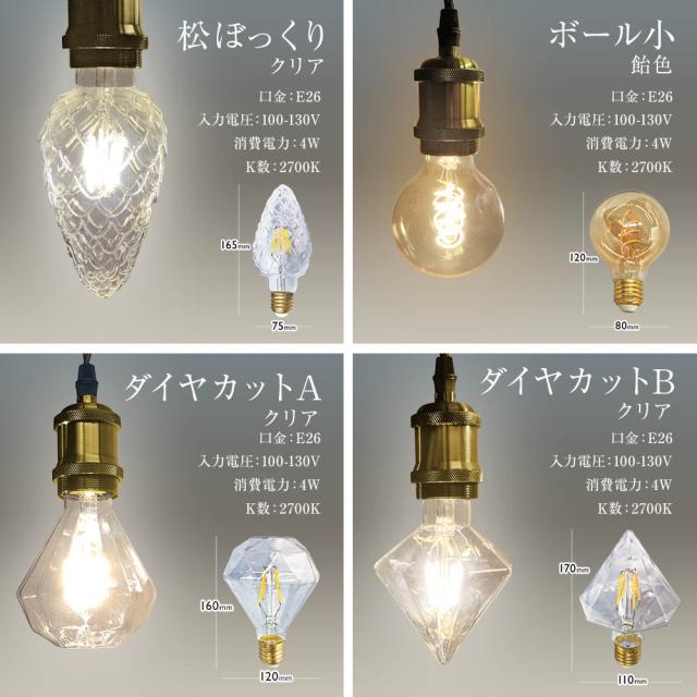 LED電球 エジソン電球 レトロ インテリア おしゃれ E26 電球 LED 照明 エジソンバルブ ランプ フィラメント 非調光 省エネ 節電 節約 間接照明 ノスタルジック アンティーク照明 暖温色 2700k ボール小 飴色