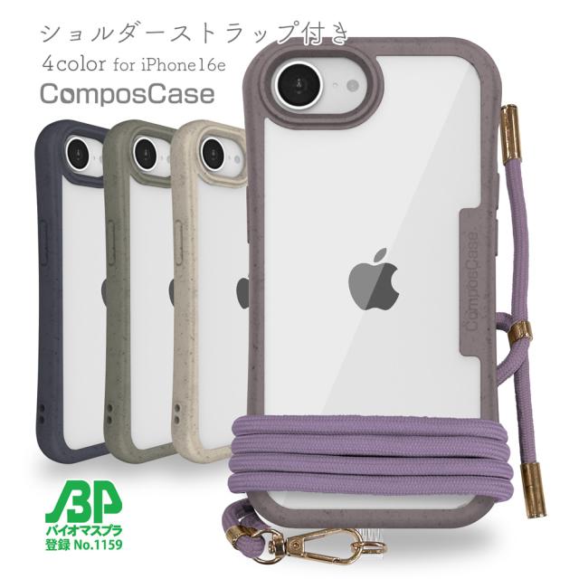 【14時までの注文で当日発送】 コンポスケース iPhone16e スマホショルダー スマホケース アイフォン ケース 着せ替え 肩掛け 首かけ 斜めがけ 背面 シール ショルダーストラップ エコ 4色 ベージュ モスグリーン グレー パープル