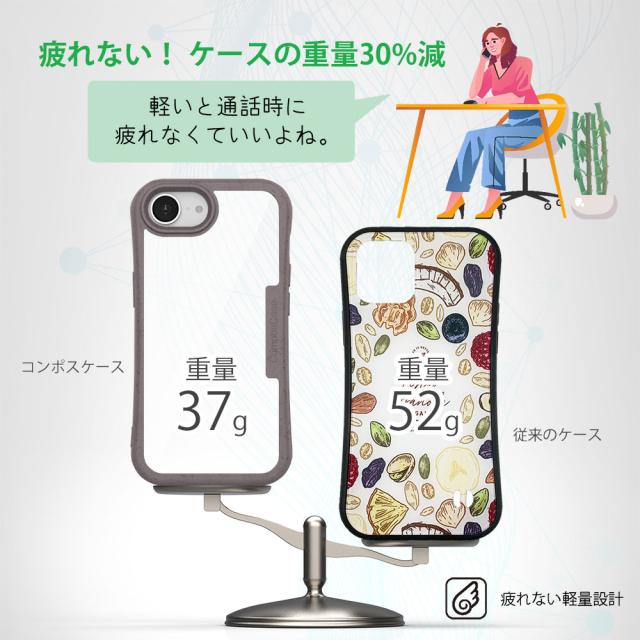 | 商品説明 | コンポスケースは、環境負荷低減を目的に開発されたスマホケース。従来のスマホケースと比べ、CO2排出量を50%削減できます。しかも、循環型社会に対応した素材を使ったケースです。![]() |