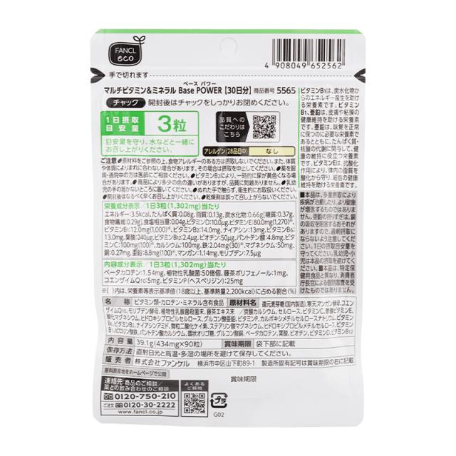 FANCL ファンケル マルチビタミン&ミネラル Base POWER 30日分 サプリメント フード 健康食品 乳酸菌 ビタミンB2 B6 ビタミンE 亜鉛[ギフトラッピング対応]