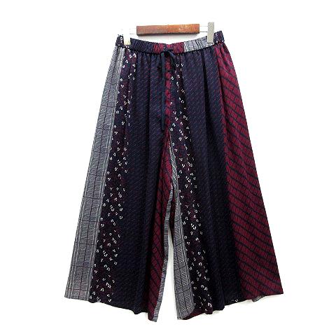【中古】未使用品 リフラッティ シップス liflattie ships パッチワーク ワイド キュロット パンツ 花柄 チェック ネイビー ワイン S