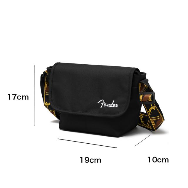 フェンダーのモノグラムストラップを忠実に再現した、ヴィンテージテイストなデザインのショルダーストラップが目を惹くアイテム。コンパクトな見た目ながらも、日常的に持ち歩く荷物に加え、ミニボトルもしっかり収まる収納力。バッグ内外にポケットを配置しているので、細かいアイテムも整頓して持ち運びが可能。
