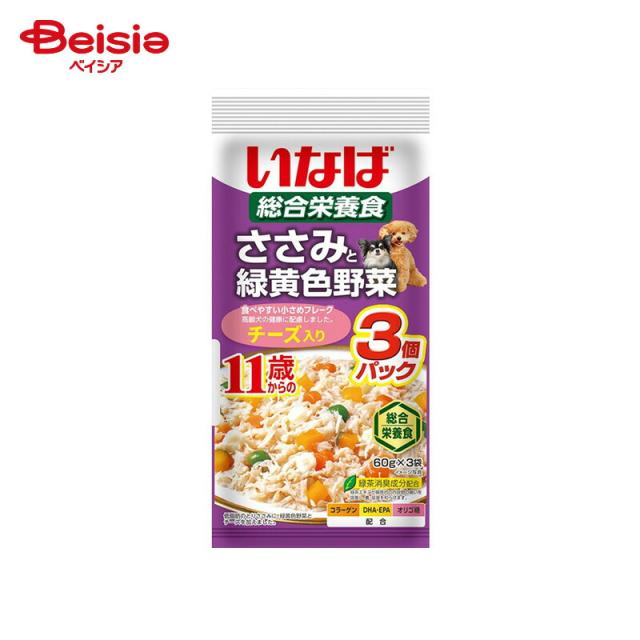 いなばペットフード ささみと緑黄色野菜 11歳からのチーズ入り (60g×3袋)×16個 ペット | 犬 おやつ 国産 ドッグフード ささみ 緑黄色野菜 チーズ シニア犬 11歳以上 小型犬 中型犬 大型犬 全犬種 パウチ ウェットフード まとめ買い