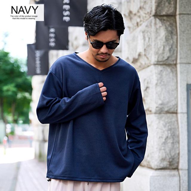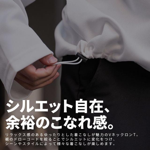 ロンT メンズ 長袖 長袖Tシャツ ブランド おしゃれ 2way 無地 シンプル Vネック トップス カットソー インナー 大きいサイズ ビッグシルエット オーバーサイズ ゆったり ドローコード ストレッチ 伸縮性 ホワイト ブラック ブルー ライム 白 黒 M L CavariA キャバリア 大人 カジュアル ストリート ストリート系 韓国 韓国系 韓国ファッション 下北沢 下北系 古着 古着系 90s 90年代 2000年代 Y2K ユニセックス レディース 男女兼用 ペア 服 春 秋 冬 春服 秋服 冬服 男性 男 父の日 父の日ギフト 父の日プレゼント 20代 30代 40代 ファッション メンズファッション 東京 プレゼント 誕生日 記念日 贈り物 ギフト配送について