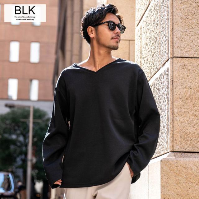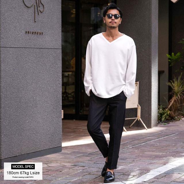 ロンT メンズ 長袖 長袖Tシャツ ブランド おしゃれ 無地 Vネック トップス カットソー インナー 大きいサイズ ドローコード ストレッチ ホワイト ブラック ブルー 白 黒 大人 20代 30代 40代 50代 ちょいワル ユニセックス 男性 男 服 秋 冬 秋冬 ファッション [CARE25-02]