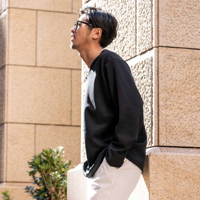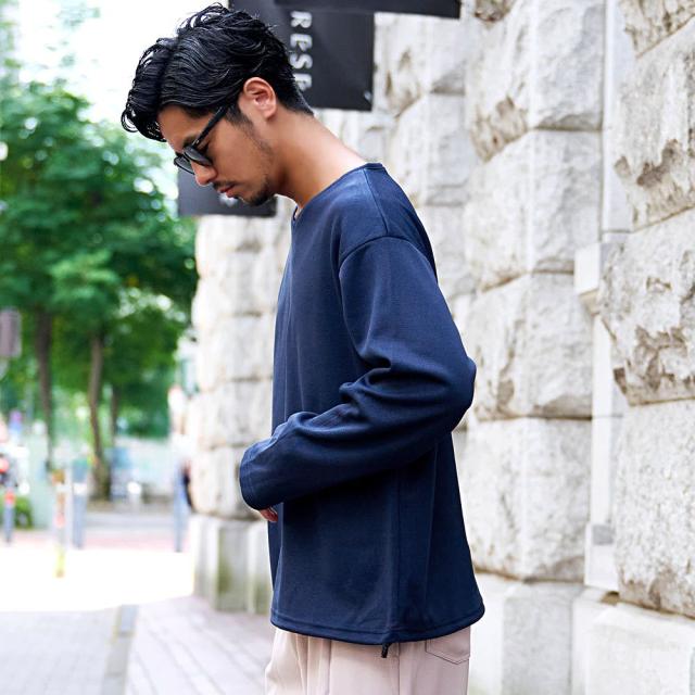 程よく肉厚でさらっとした肌触りのポリエステル素材を使用したロンT。