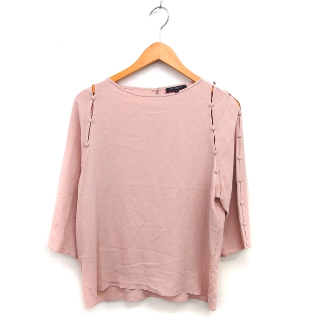 【中古】アントネッリ ANTONELLI ブラウス ボートネック シルク混 透け感 七分袖 無地 42 コーラルピンク /NT35
