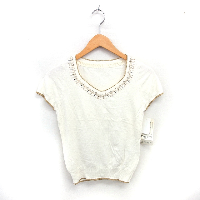 【中古】未使用品 エムケー ミッシェルクラン タグ付き ニット セーター ビーズ装飾 半袖 38 アイボリー /TT