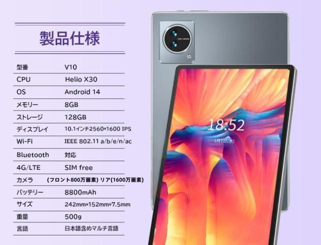 タブレット PC 本体 Android14 10インチ 本体 2024最新作 8+256GB FullHD wi-fi 5G 在宅勤務 ネット授業 コスパ最高 安い クリスマス GPS 電話 タブレット