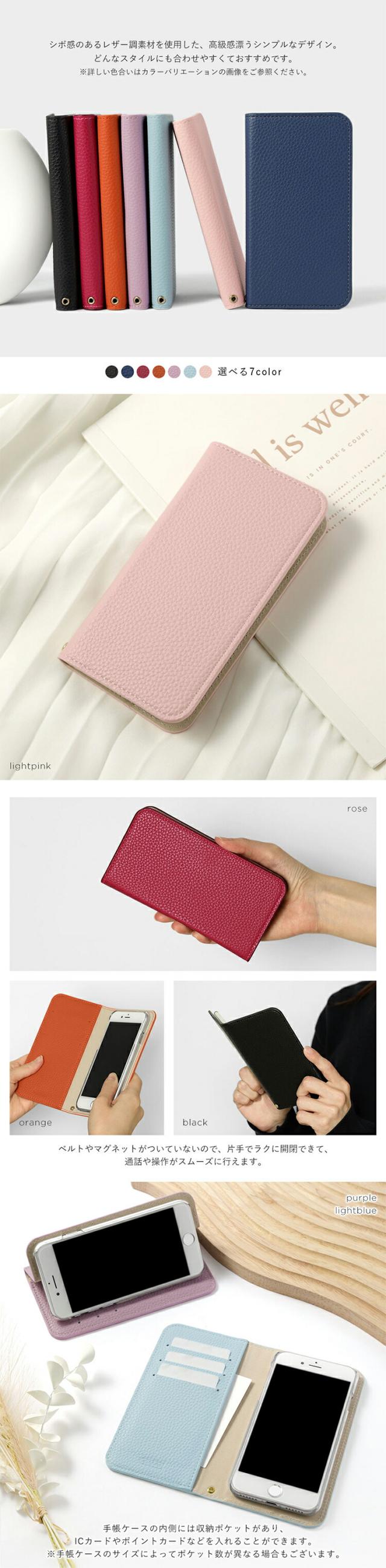 ※カメラ穴は通常の撮影時は問題なく使用できますが、広角レンズやフラッシュを使用した場合ケースのお色が写り込む場合がございます。※手帳の色・仕様が変更になる場合があります。