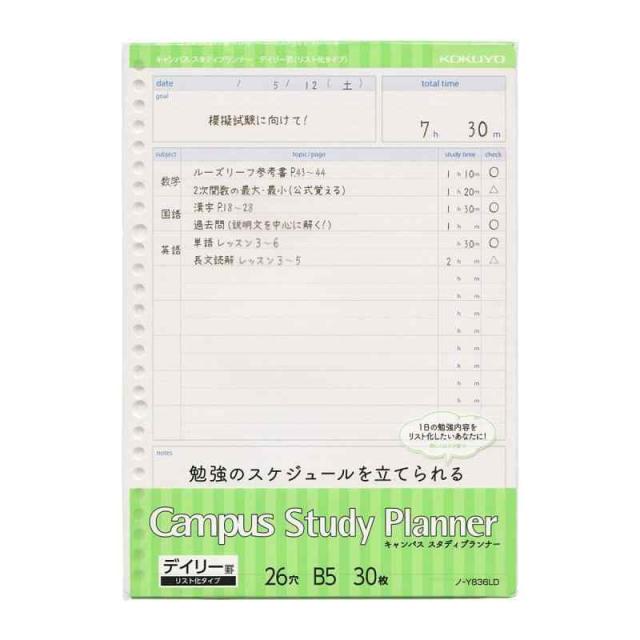 コクヨ キャンパス スタディプランナー ルーズリーフ ウィークリー罫みえる化 (1日罫・リスト化)