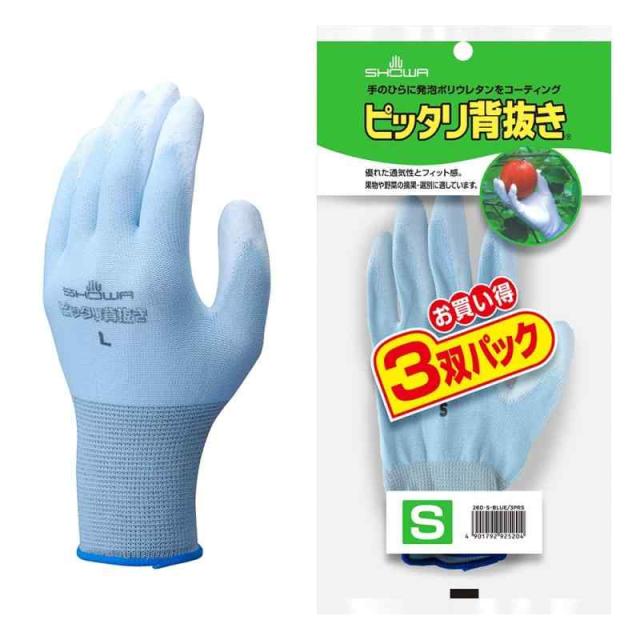 【ポリウレタンコーティング手袋】 ショーワグローブ(Showaglove) No.260ピッタリ背抜き Sサイズ ブルー 3双パック