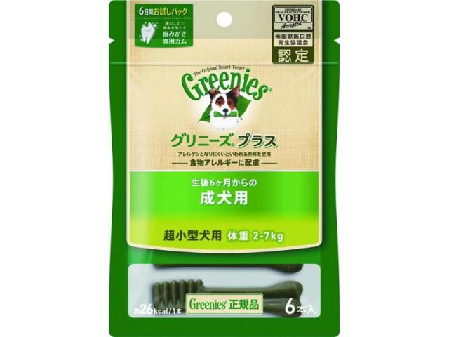 グリニーズ プラス 犬用 歯磨きガム 超小型犬用 体重2-7kg 生後6か月からの 成犬用 6本 歯みがきガム VOHC認定 総合栄養食 ドッグフード おやつ Greenies お試し