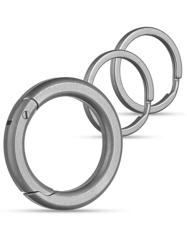 TISUR 丸型 カラビナ キーホルダー小型 おしゃれ 車キーリング 鍵 収納 (チタン グレー丸型カラビナ+チタンキーリン2個)