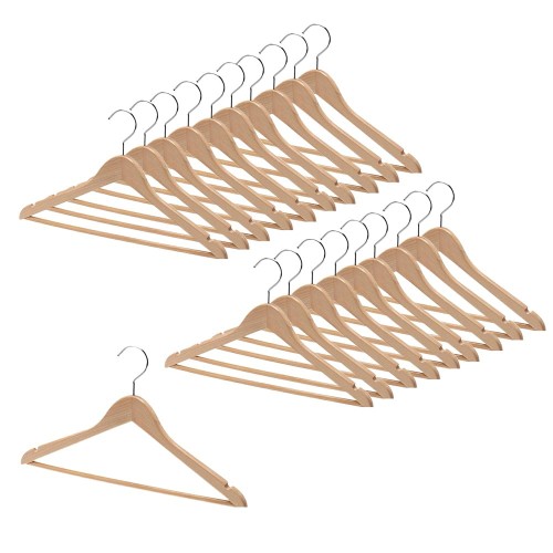 タマトシ 木製 ハンガー フック 360度回転 ジャケット コート 着物 天然 高級 木 おしゃれ 店舗 収納 シャツ ジャケット用 バー付き 42cm幅 20本組 クリア
