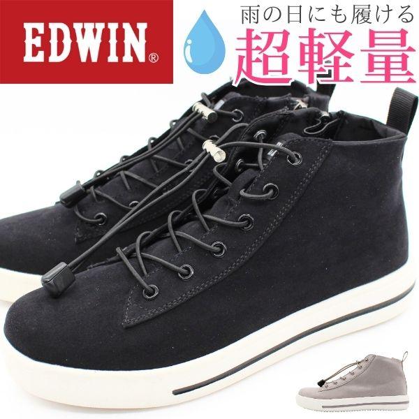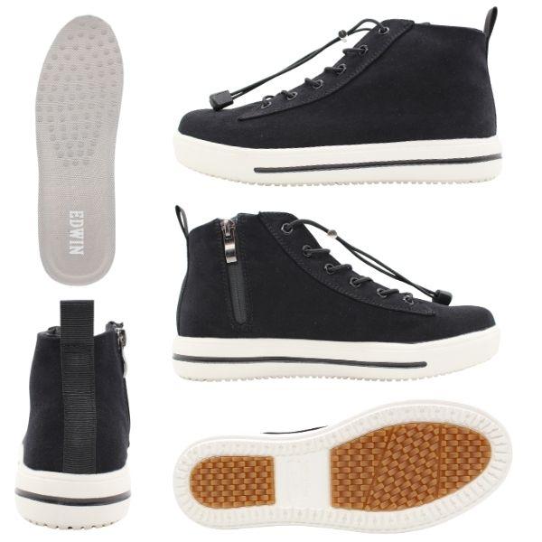 エドウィン スニーカー レディース 靴 黒 ブラック オーク 軽量 軽い 超軽量 シンプル ゴム紐 防水 撥水 止水ファスナー サイドファスナー 取り外せるインソール 可愛い 晴雨兼用 EDWIN EDW-37600