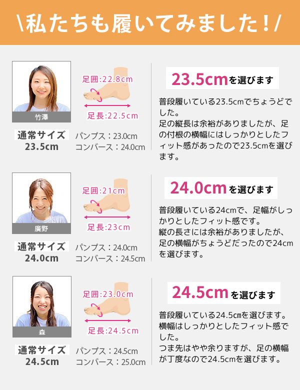 取り扱いサイズ:23cm 23.5cm 24cm 24.5cm