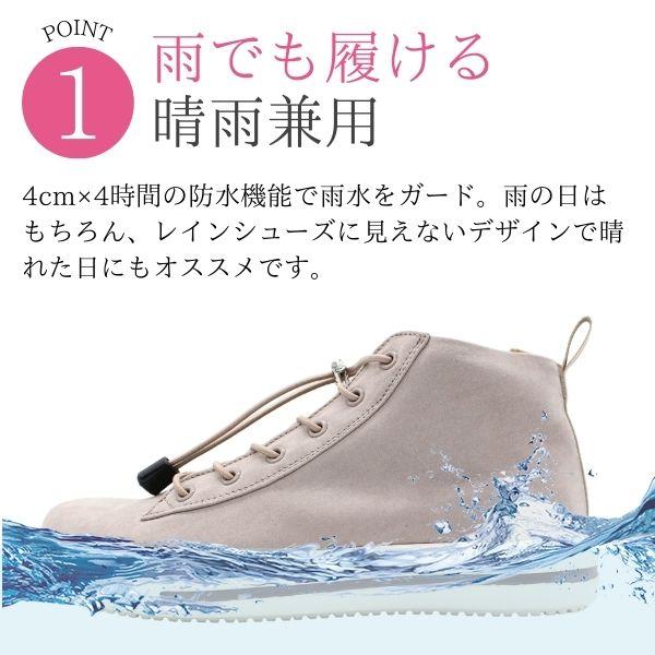 4cm×4時間の防水機能で雨水をガード。雨の日はもちろん、レインシューズに見えないデザインで晴れた日にもオススメです。