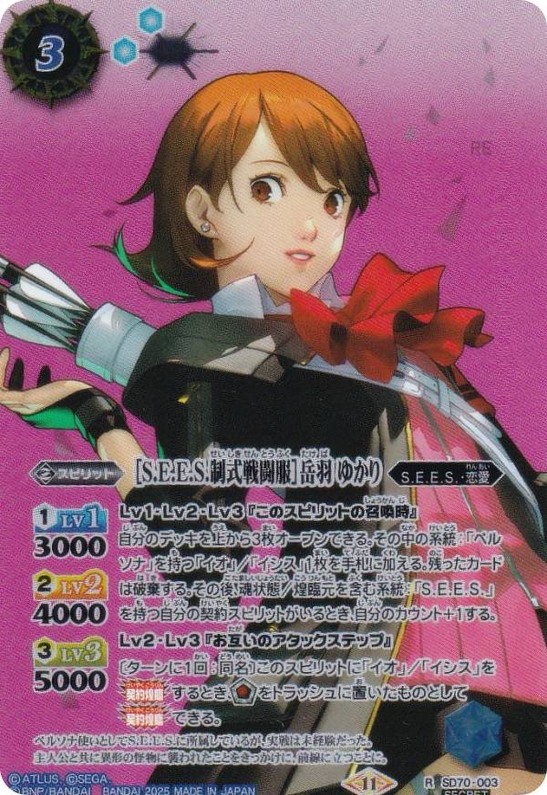 【SECRET】バトルスピリッツ SD70-003 [S.E.E.S.制式戦闘服]岳羽 ゆかり (R レア) コラボスターター ペルソナ3 リロード