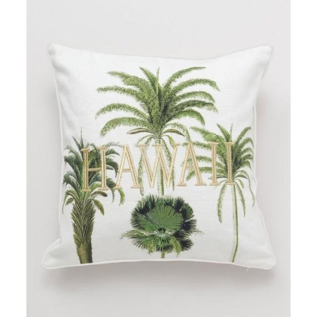 パームツリーのデザインされたクッションカバー。金の刺しゅうで大きくHAWAIIの文字が施されており、大人なハワイアンテイストで高級感のある印象に。中身のクッションは付いておりません。