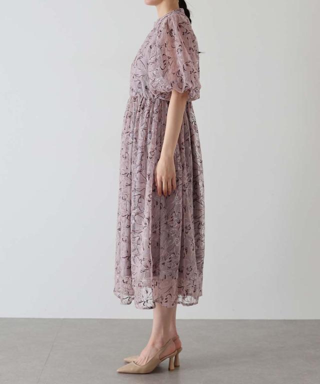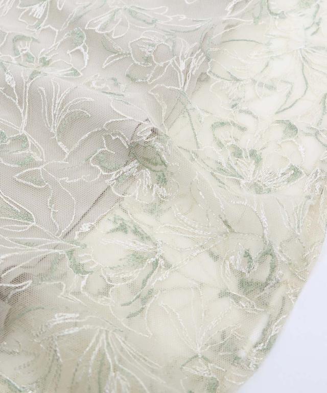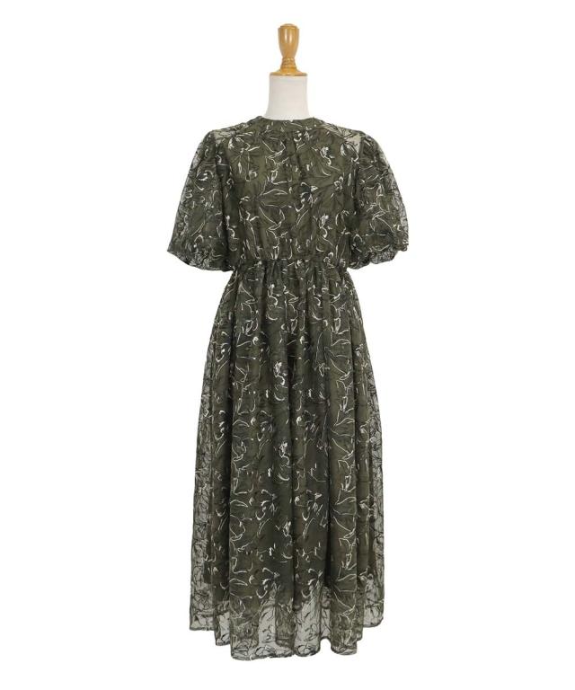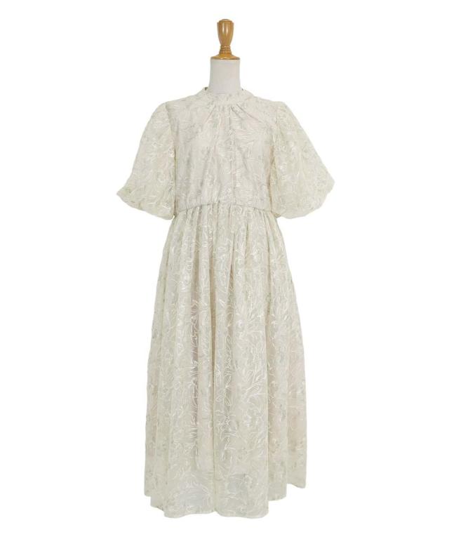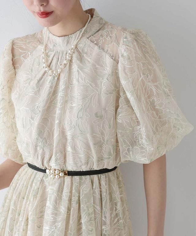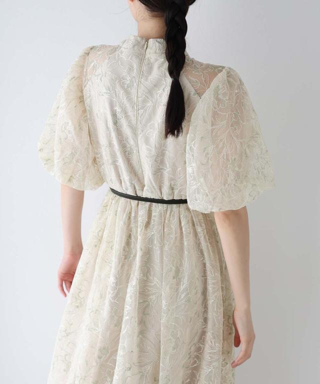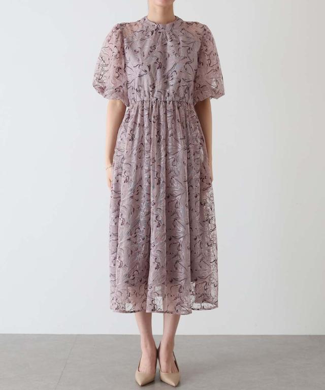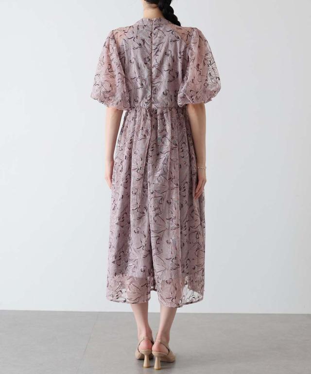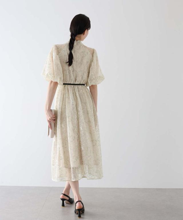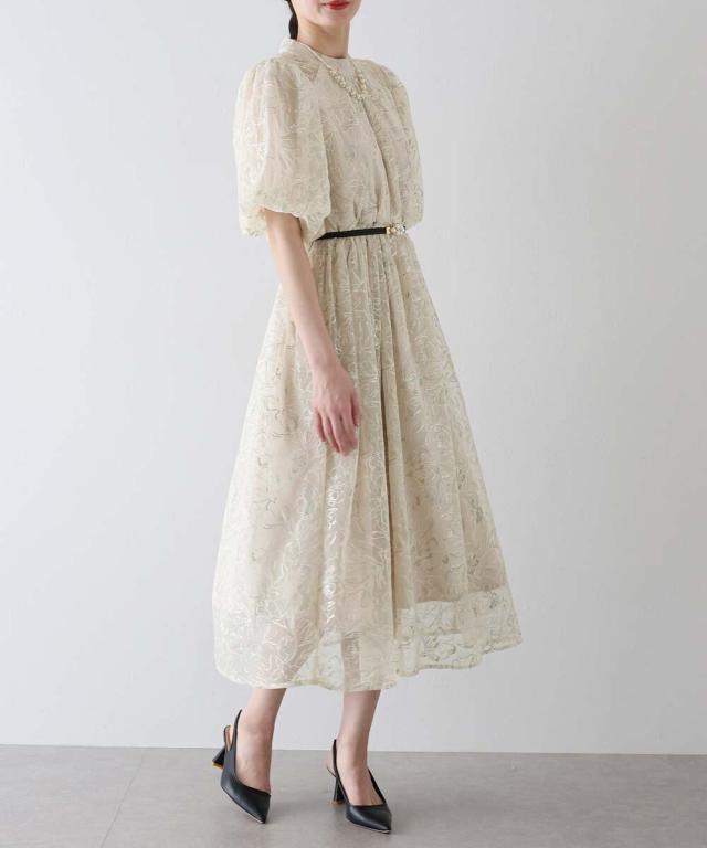高級感のある花柄刺繍レースを使用した、ラグジュアリー感溢れる華やかなドレス。