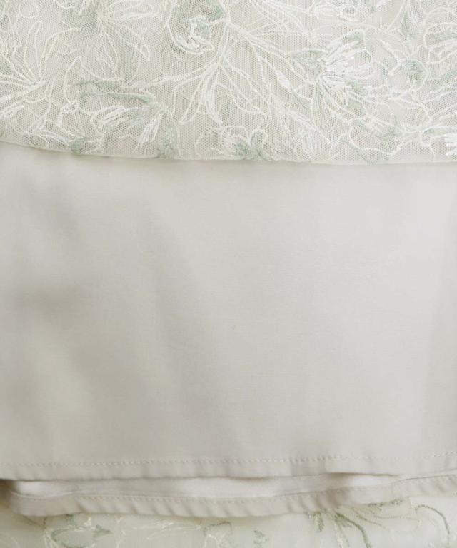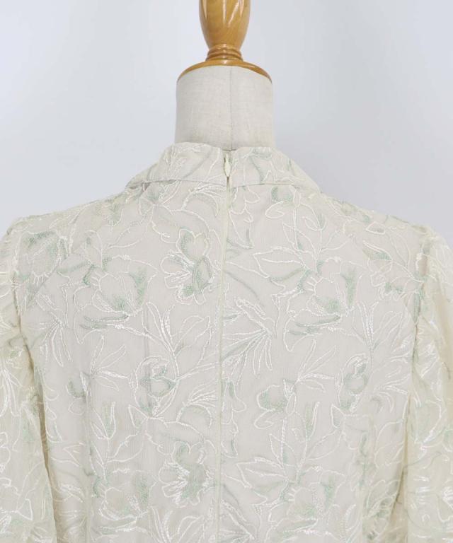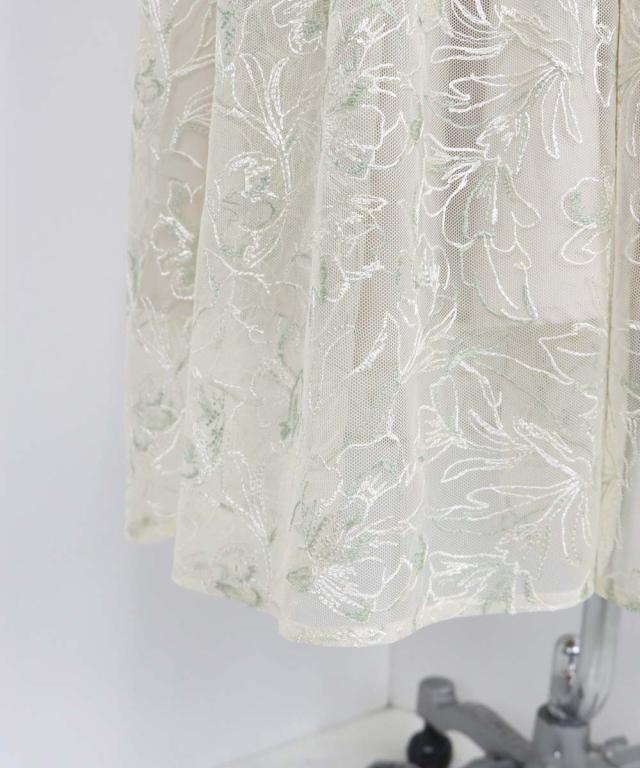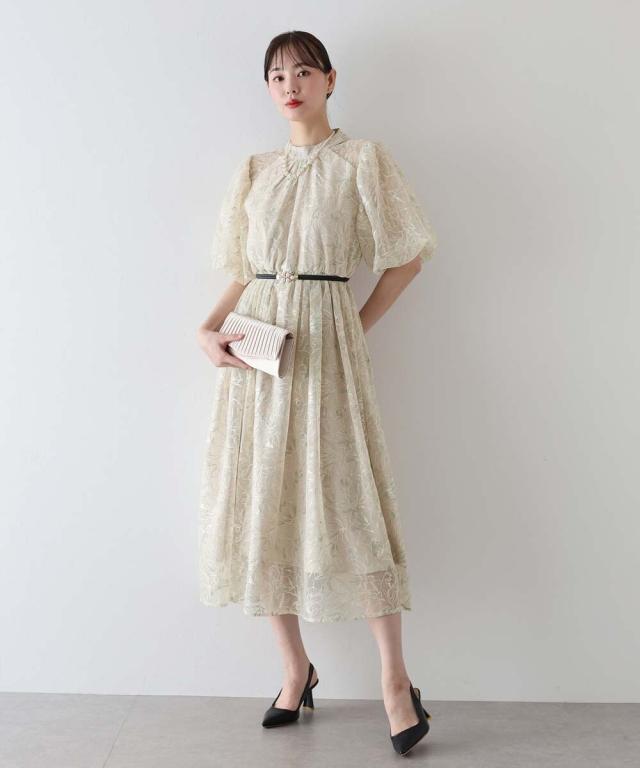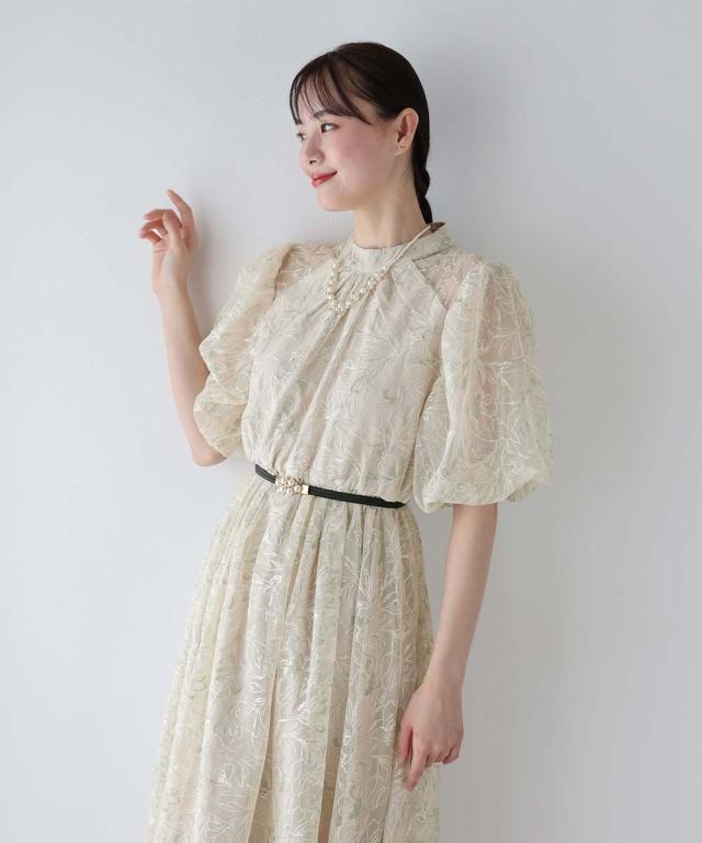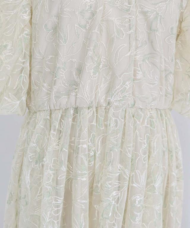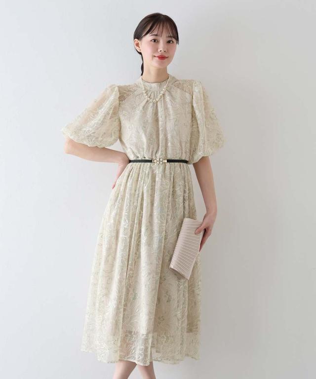 立体感のある花柄刺繍レースを使用した甘すぎないデザインのパーティーワンピース・結婚式ワンピース