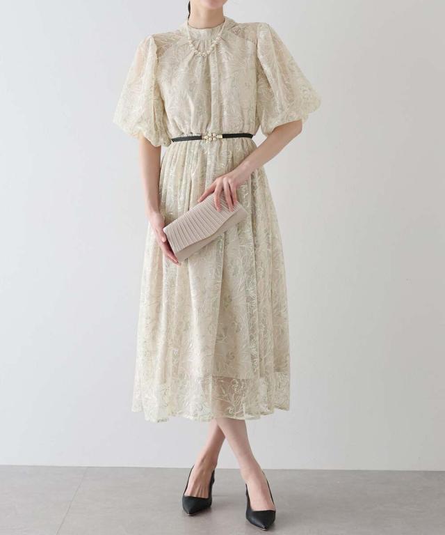 バルーンスリーブレースドレス