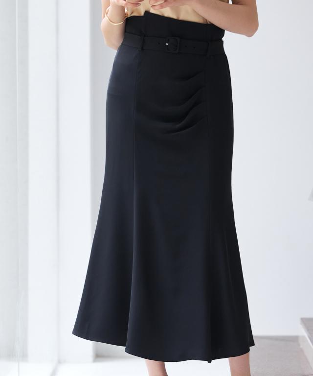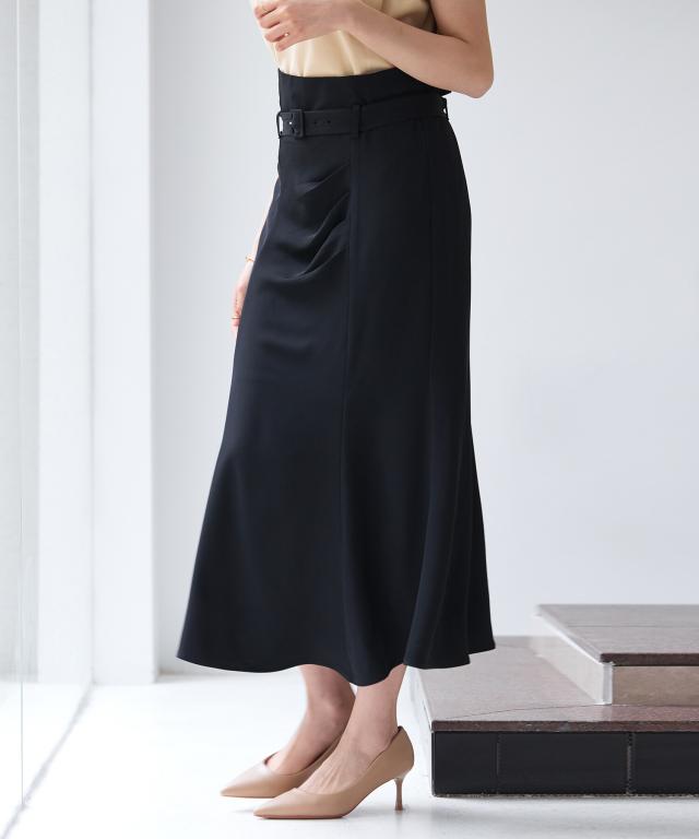 ベルト付きタックドレープスカート