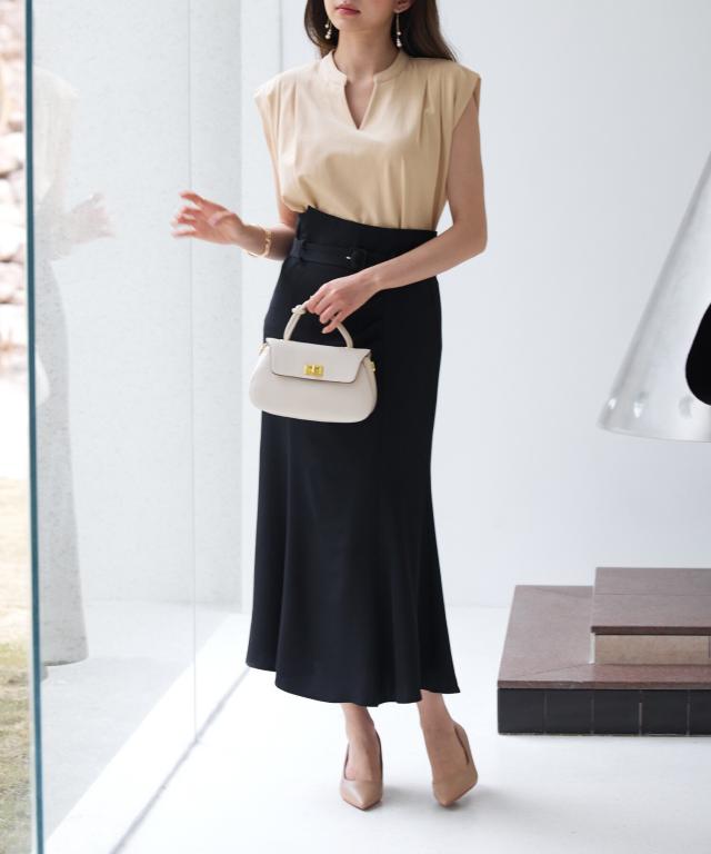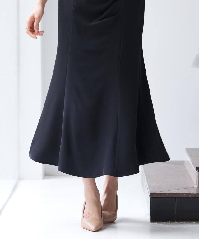 裾周りは、ほどよく広がったややマーメイドシルエットです。華やかな日常コーデにもオフィスカジュアルにも着回せます。