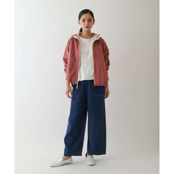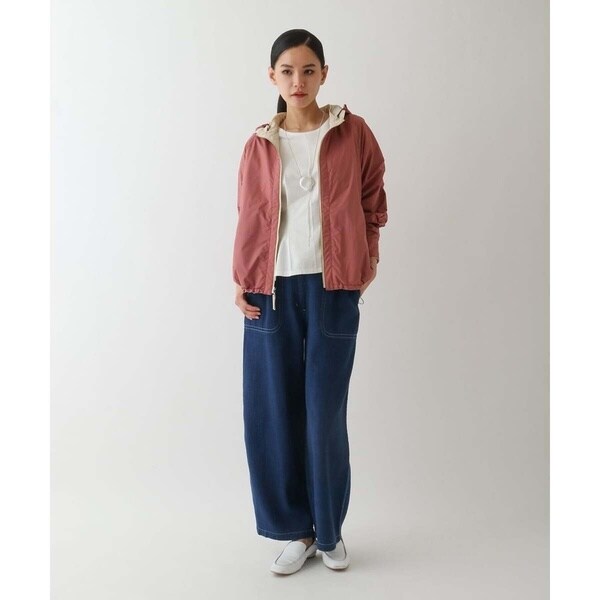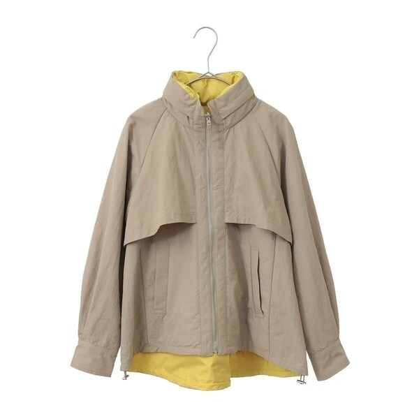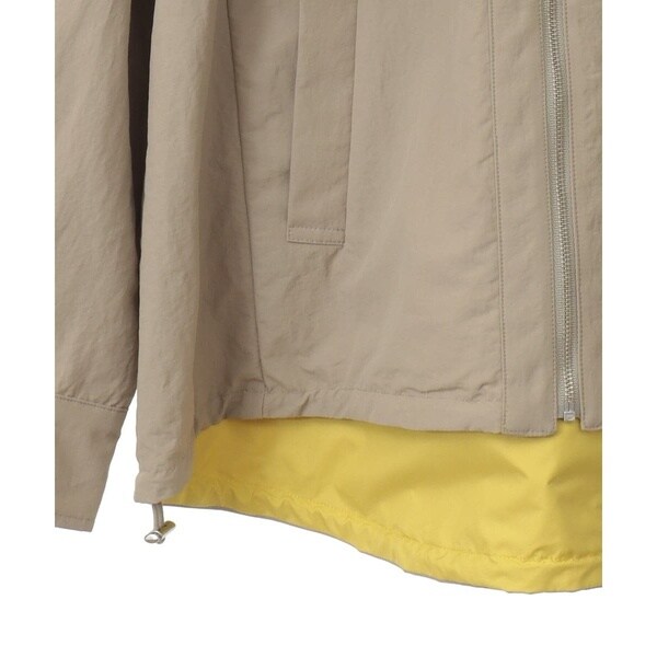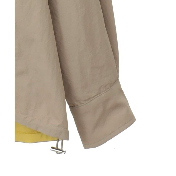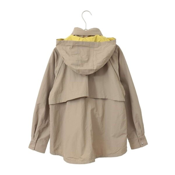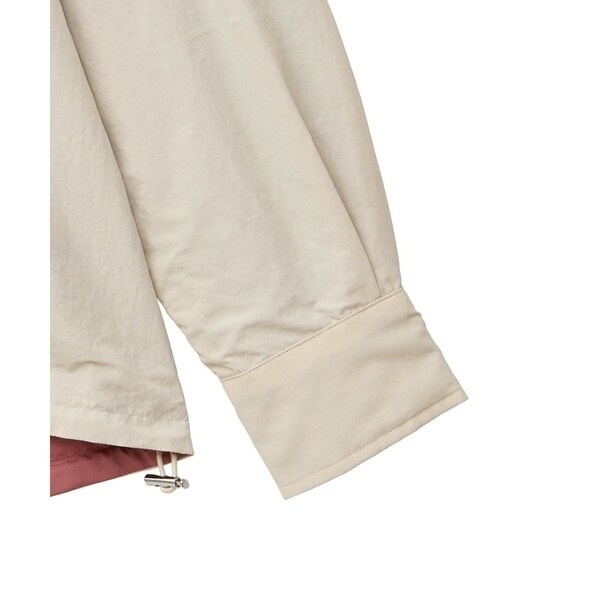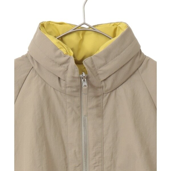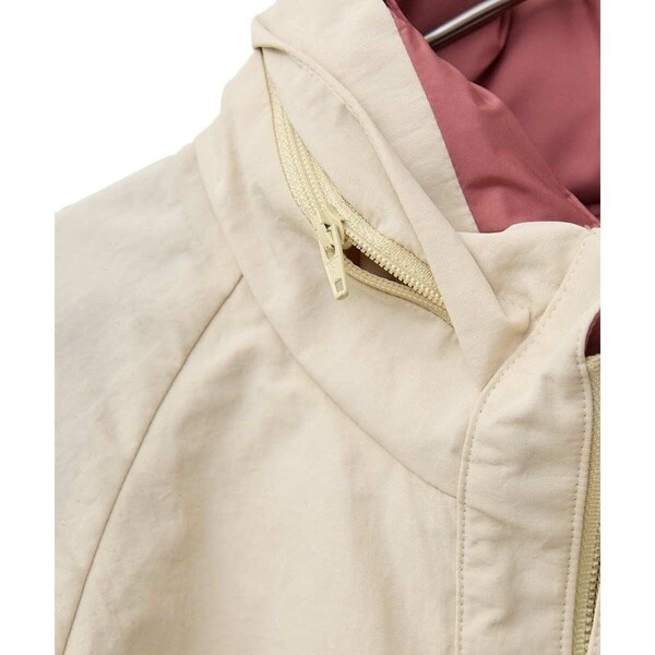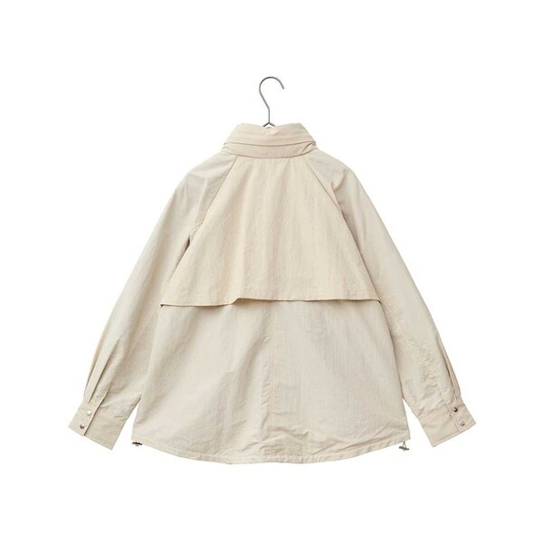 スタンドカラーの内側にはフードを収納することもでき、袖口ボタンやジップポケットの実用的なディテールもポイントに。