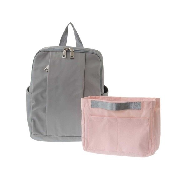 リュック本体にポケットが合計8つあり、そこにインバッグをプラスすると細かな小物類も沢山入れられる収納力が魅力。抜群の収納力ながら小さめサイズなので、お身体が華奢な方や、お荷物をコンパクトにまとめたい方におすすめです。500mlペットボトルは縦向き横向きのどちらでも余裕を持って入ります。