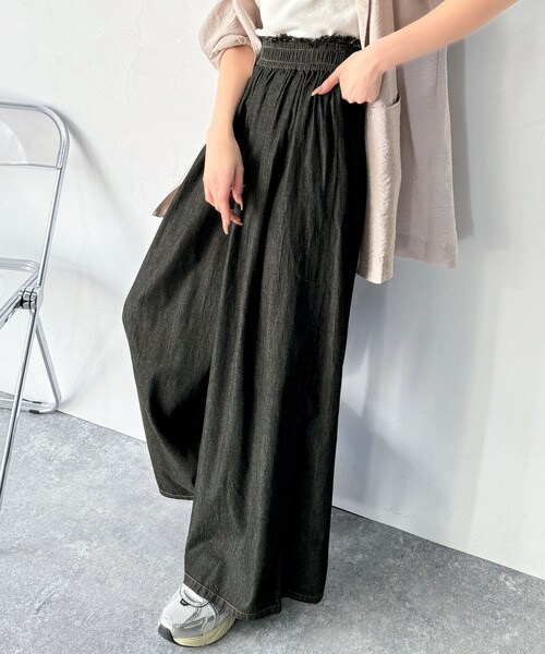 こなれカジュアルの決定版♪綿100%ライトオンスデニム素材ウエストフリンジワイドパンツ