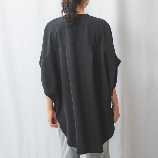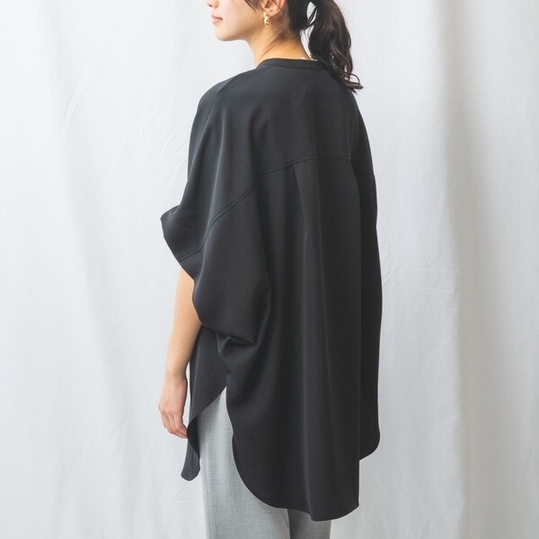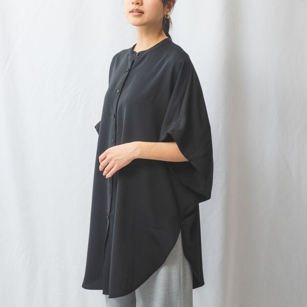 柔らかい素材を生かした落ち感のあるシルエットが魅力的なソフトボリュームロングシャツ。シンプルなバンドカラーで首元にすっきりとした印象を与えます。ソフトなムードを強調するために緩やかに折り返した袖口のディティールがポイント。トップスはもちろん羽織りとしても着こなすことができ、その日の気分に合わせて様々なスタイルをお楽しみいただけます。