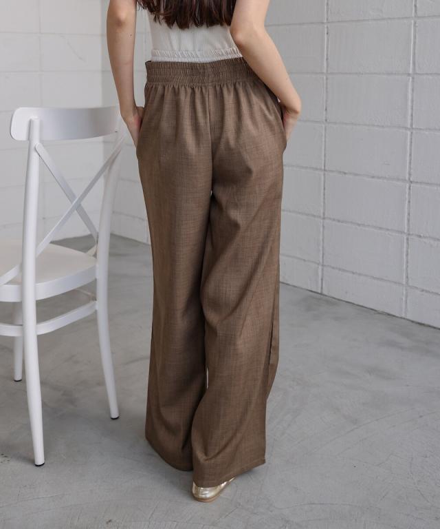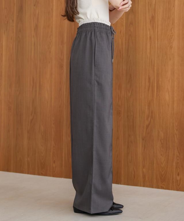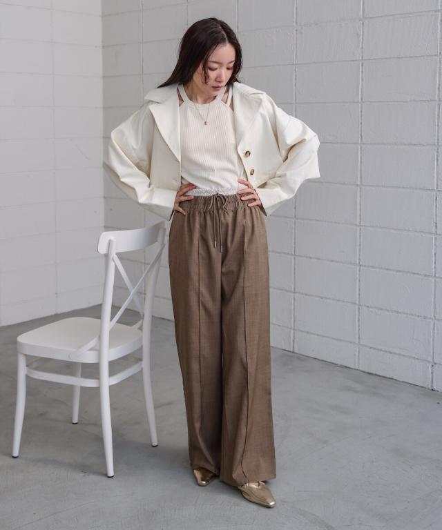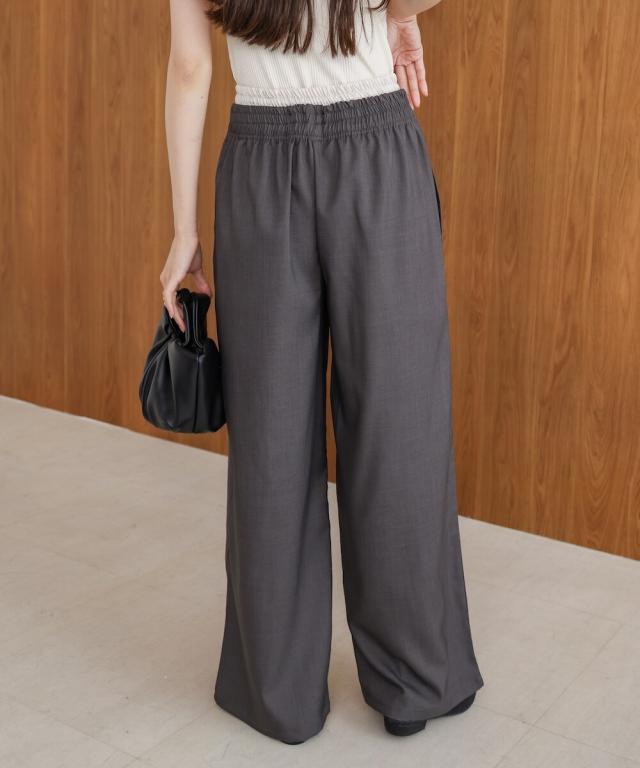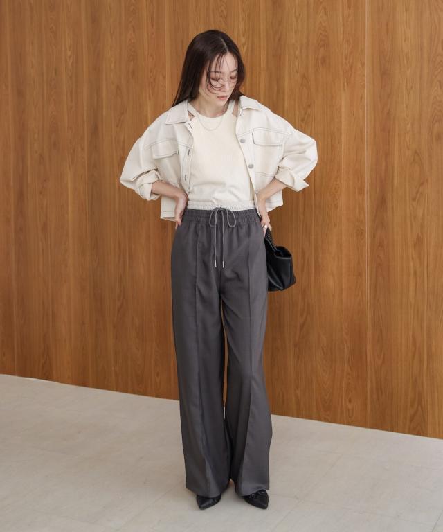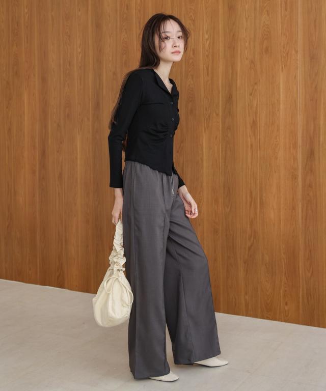 サラッとした素材感でストンと落ちるシルエットになります。伸縮性がある素材も入っているので履き心地◎これからの季節におすすめの一枚です。
