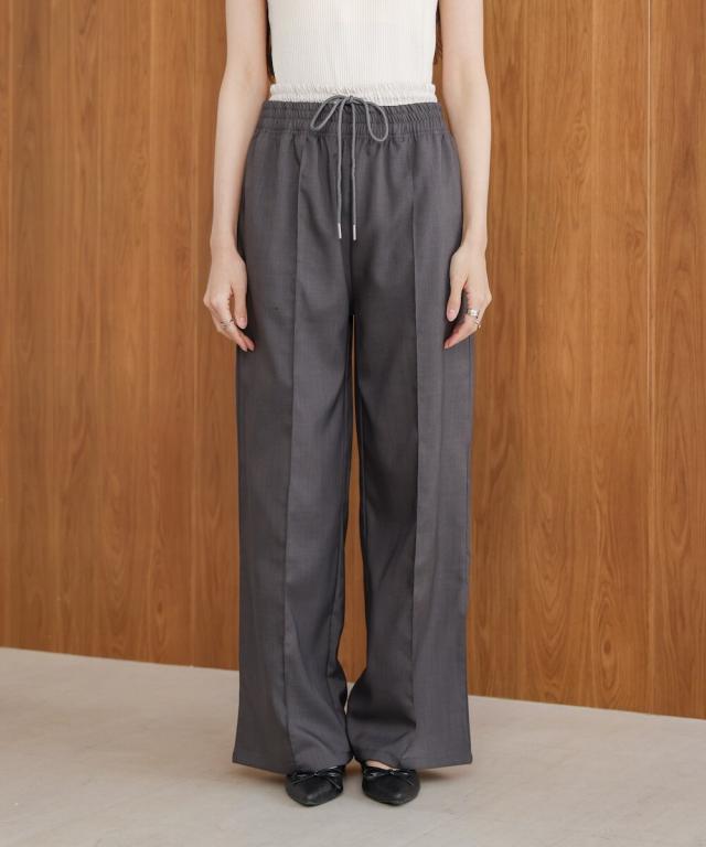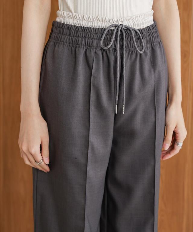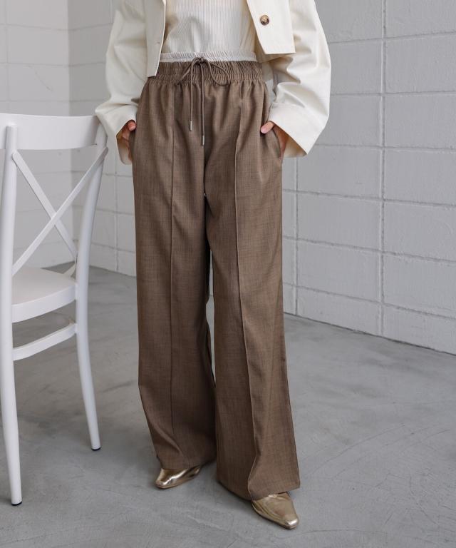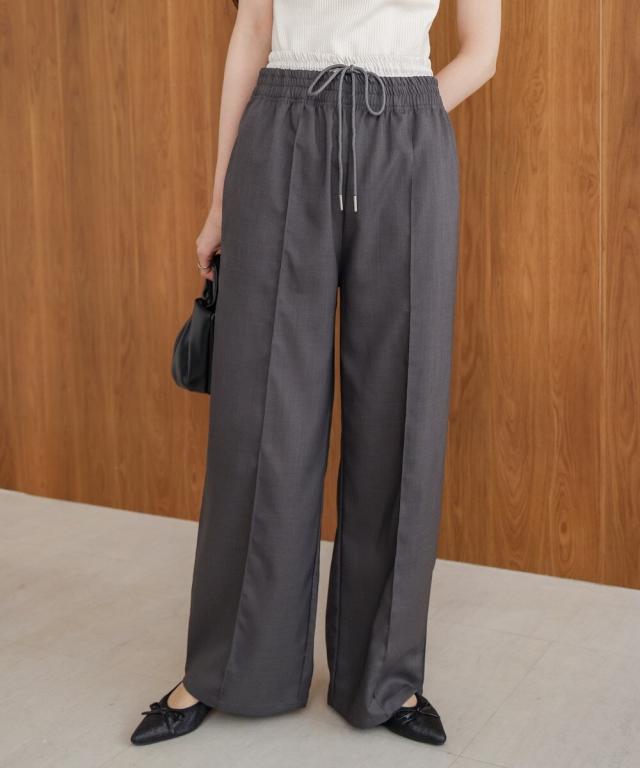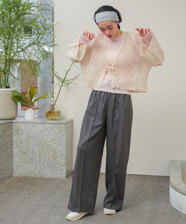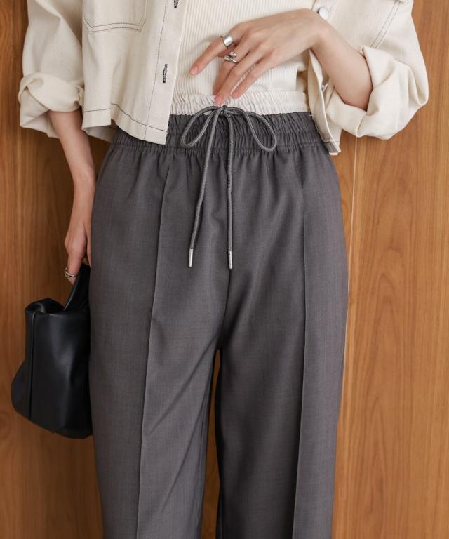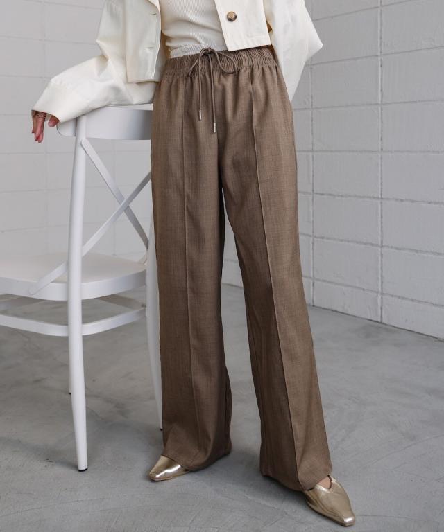 サラッとした素材感でストンと落ちるシルエットになります。伸縮性がある素材も入っているので履き心地◎これからの季節におすすめの一枚です。