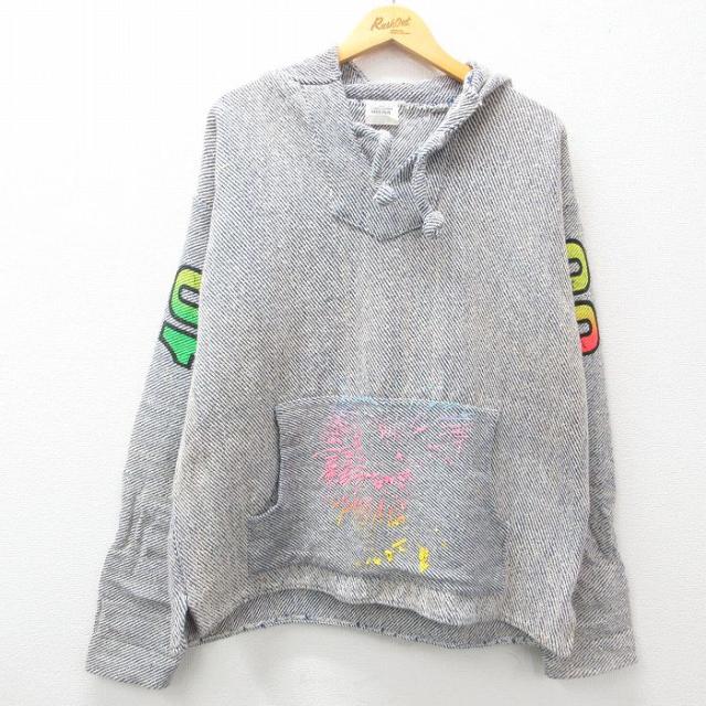 古着 長袖 メキシカン パーカー メンズ ネコ コットン メキシコ製 紺他 ネイビー Lサイズ 中古 トップス 中古 古着