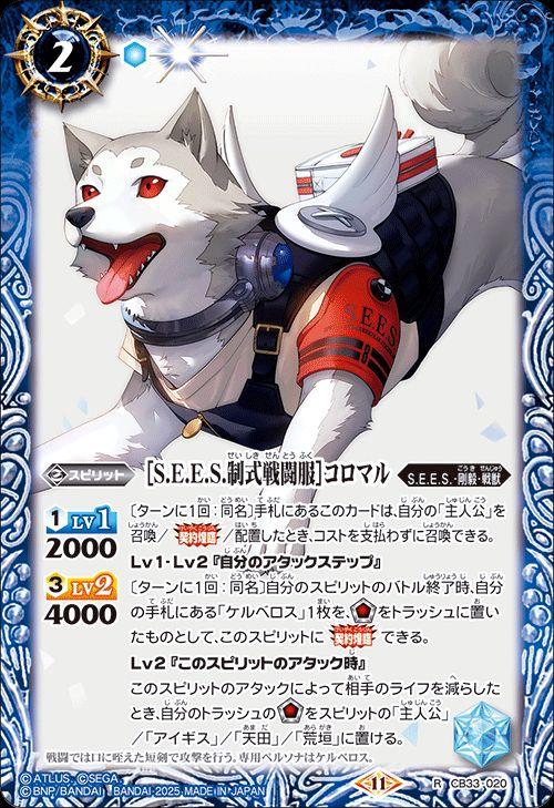 バトルスピリッツ [S.E.E.S.制式戦闘服]コロマル(レア) ペルソナ3 リロード(CB33) 020 | S.E.E.S.・剛毅・戦獣 スピリット 青
