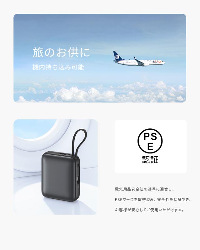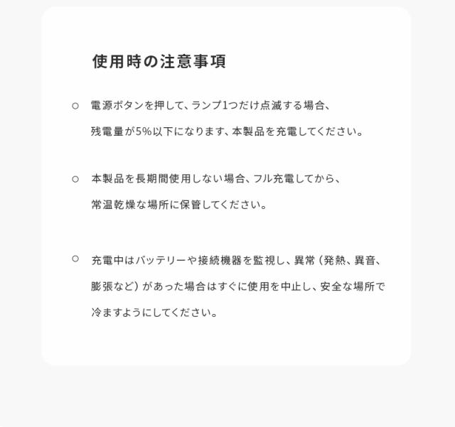【パッケージ内容】モバイルバッテリー本体/日本語取扱説明書/Type-C充電ケーブル