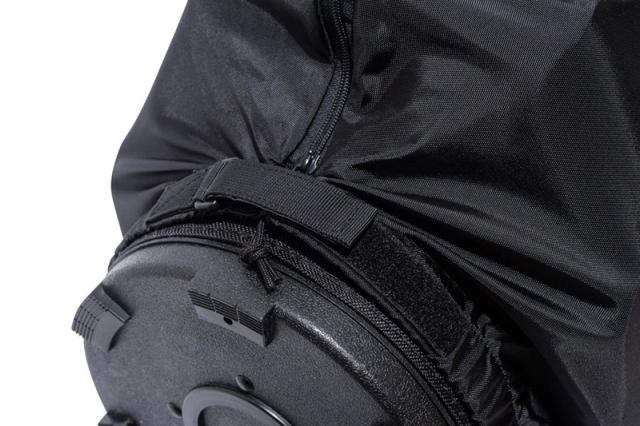 サイドのスリットがダブルジップ仕様なので、容易に脱着が可能。
