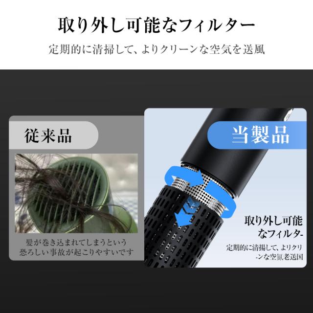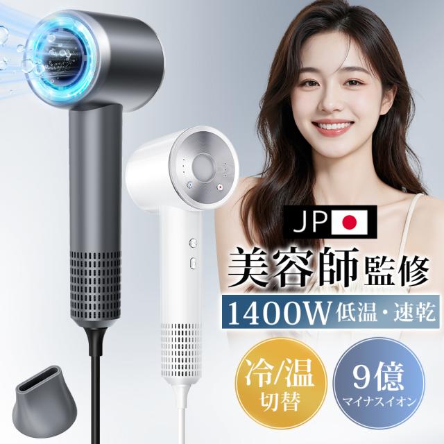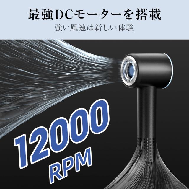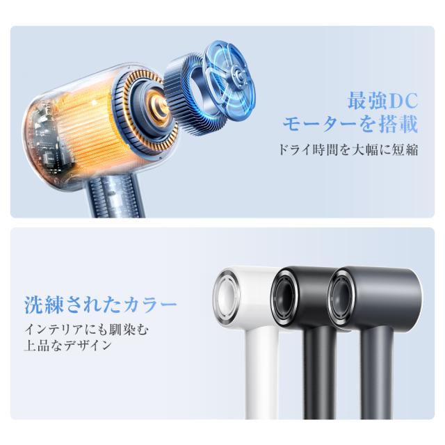 1400Wのパワフルな大風量で、パワフルなDCモーターを内蔵し、髪を根元から素早く乾かすことができます。120,000rpmの高速ブラシレスモーターを採用し、23m/s圧倒的な風速&2.6m?/分の大風量を実現。従来品より約70%のドライ時間を短縮し、最短1分間で速乾可能で、ドライ時の熱ダメージを回避できる髪に優しい 大風量 ドライヤー !