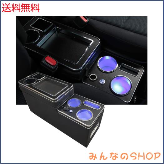 【最新型コンソールボックス】:1.ブルーのLED灯が付き、夜車内が暗い時、小物を探すことに便利になります。車内の灯を開けることが要らなく、運転の安全を確保する。2.前席+後席に 5口USBポートを増設、後部座席の乗客にも便利になります。3.収納も大容量!ティッシュボックスやマスク、スマホなど様々な物を収納できます。