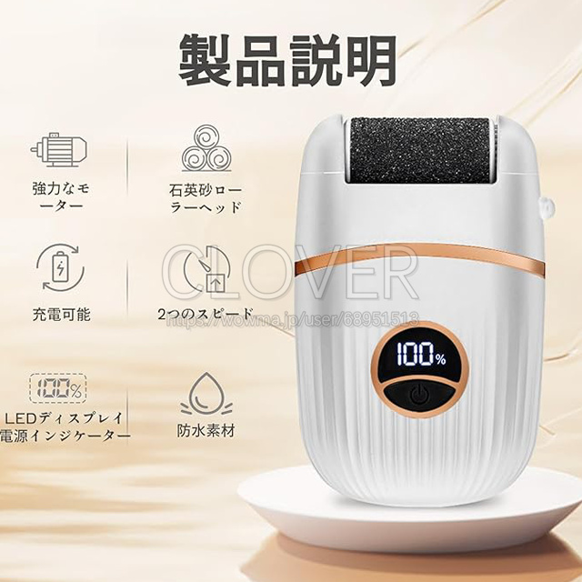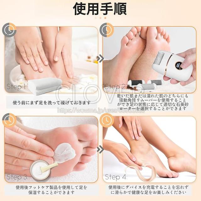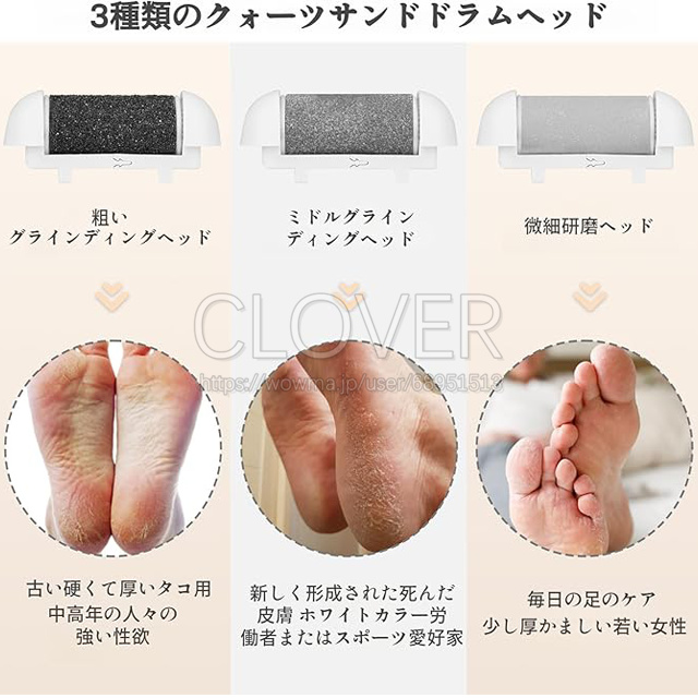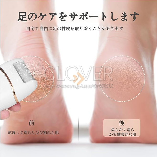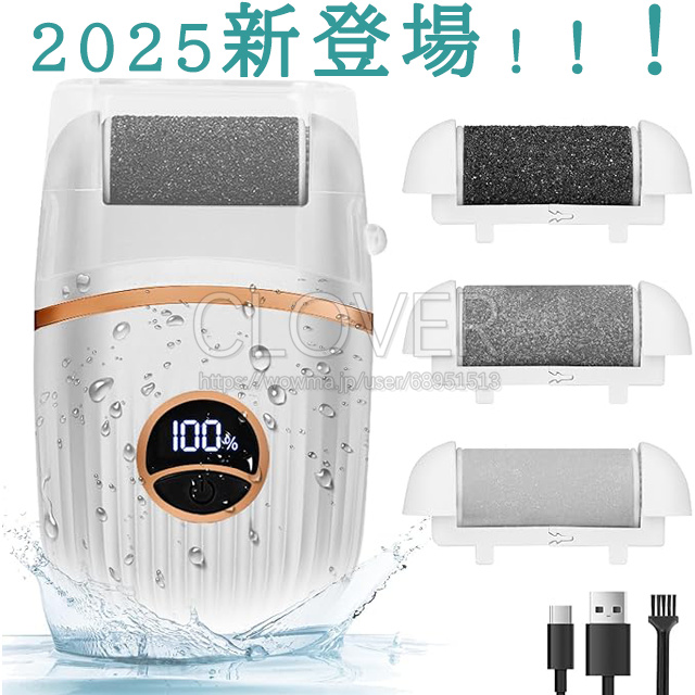 【送料無料】電動角質リムーバー ミニ Clover かかと 角質取り 3種ローラー 2段階調整 USB充電式 小型 ハードスキンリムーバー 防水IPX6 LEDライト付き LCDモニター付き ワンタッチ脱着 かくしつとり 踵 足 角質ケア 水洗い可 フットケアツール たこ取り