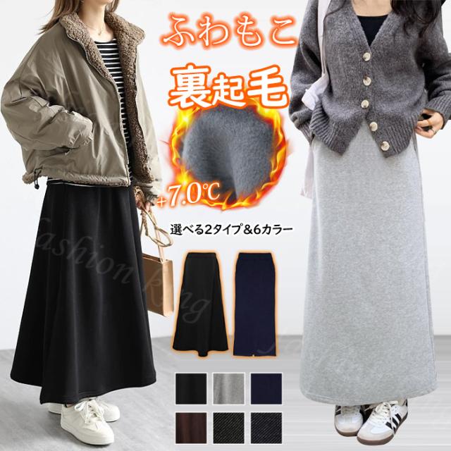 <1点1,990円!クーポン利用で>裏起毛 マキシスカート ロングスカート レディース 秋冬 タイトスカート 冬スカート 温かいスカート フレアスカート 大きいサイズ ミモレ丈 マキシ丈 ゆったり 裏シャギー ロング Aライン スカート ハイウエスト ウエストゴム