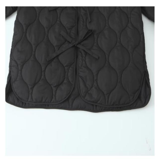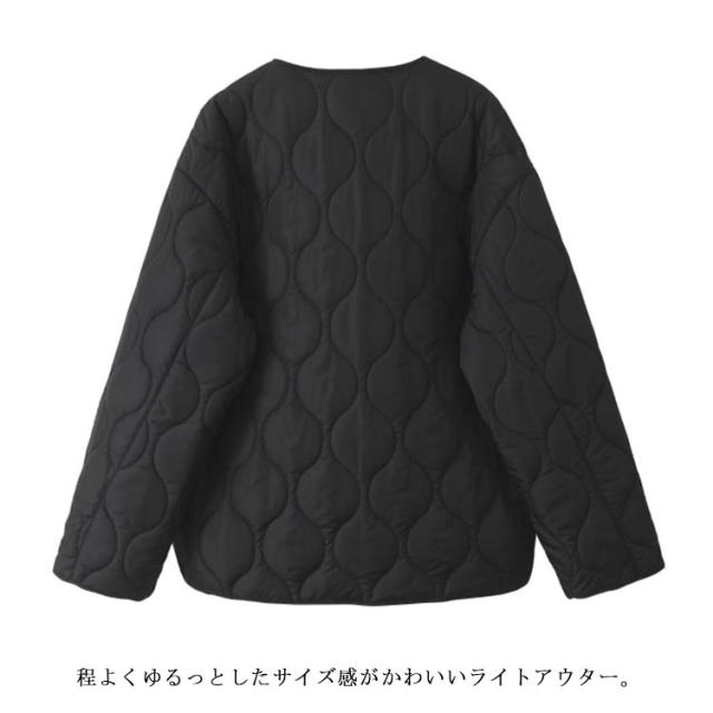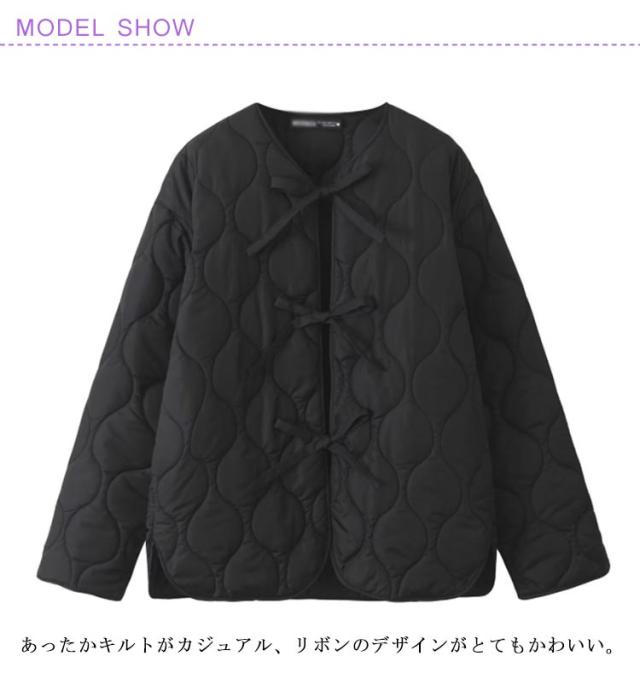 レディース アウター ジャケット キルティング コート 前開き リボン ミドル丈 大きいサイズ オーバーサイズ ノーカラー 無地 波型 キルティング 薄中綿 キルト ショートコート 中綿 秋 冬 春
